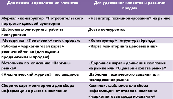 Таблица 2. Рабочие «инструменты» для исследований рынка: шаблоны и пошаговые инструкции методов.